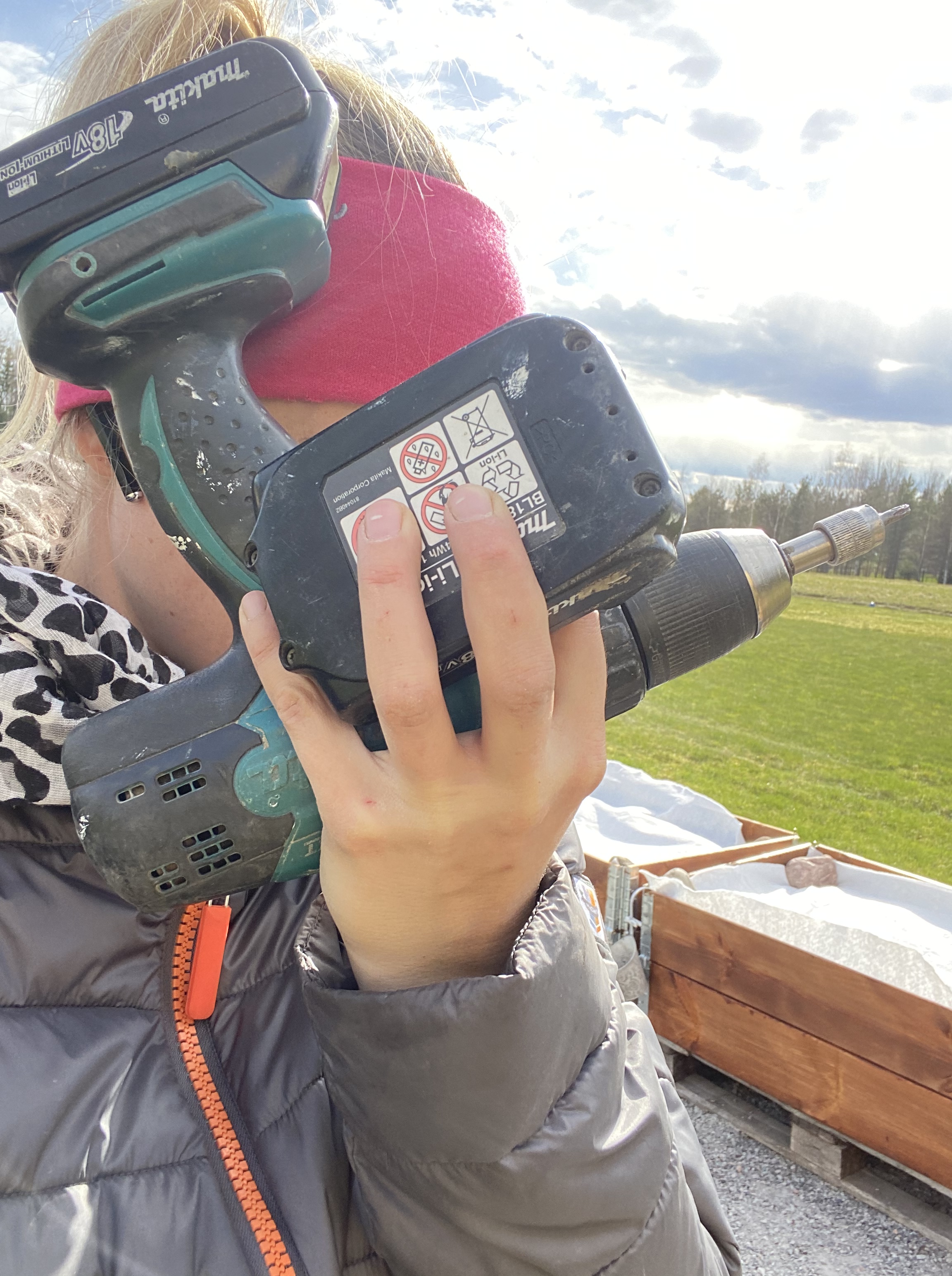 Lite finns det att fixas ännu, kanske en liten förnäm skylt och täcka in vissa hål. Tänkte sätta blommor uppe längs kanterna, eftersom det är möjligt genom att lägga en liten bräda under första mellanrummet, men det måste bli lite varmare utomhus så blommorna inte fryser ihjäl..lovar lägga bilder om det lyckas.