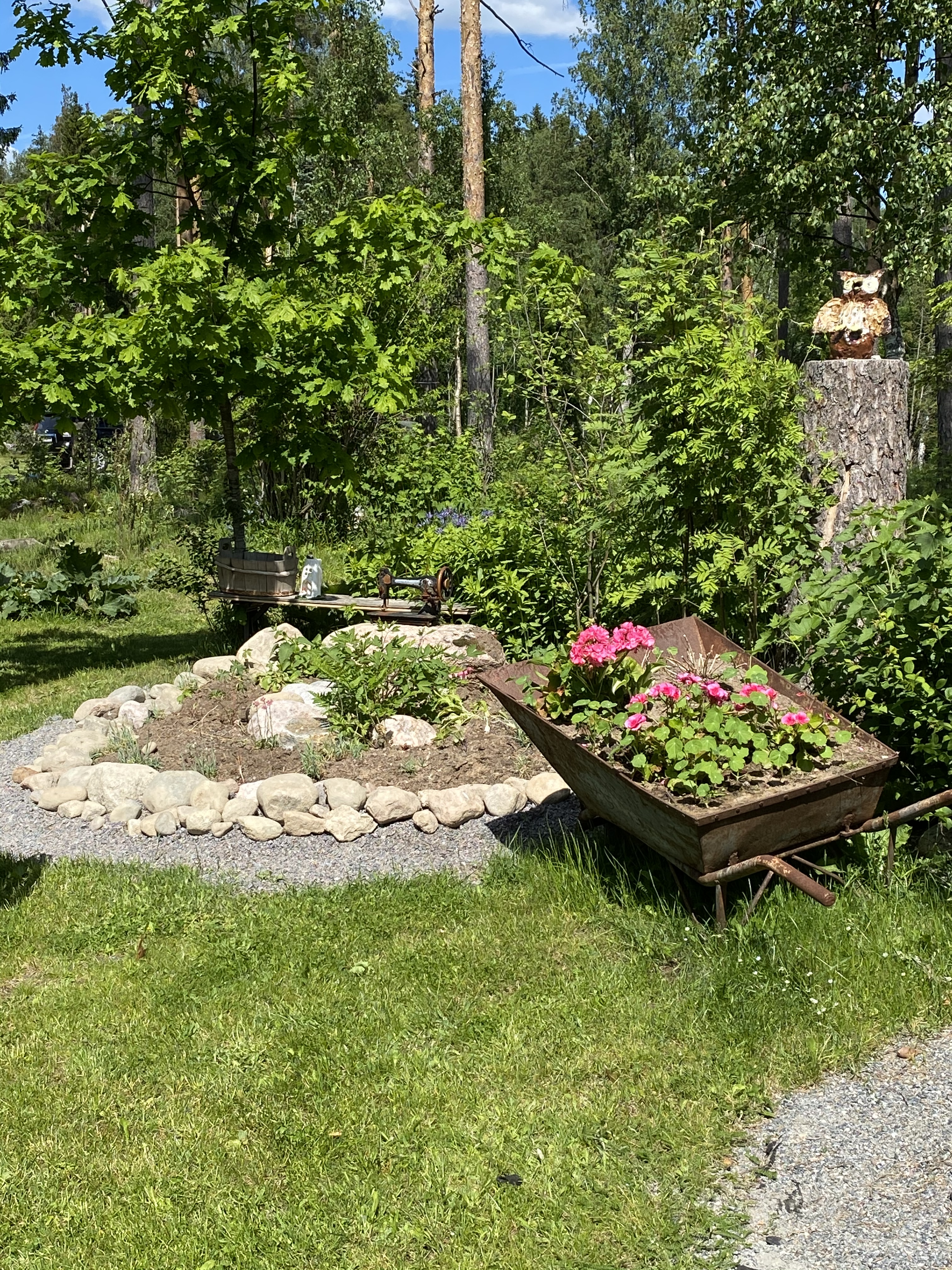 Att fixa och pynja i trädgården har inte varit något som följt med mig sen barnsben. Faktum är att jag ofta inte alls förstod mig på min mamma då hon alltid kom och sa jag skall komma ut och njuta av att vara utomhus. Att hellre sitta inne med en bok framför näsan eller lyssna på musik lockade mer än att vara ute i gassande sol eller göra något i trädgården. Tänk så saker och ting kan ändras. Jag skulle säkert kunna skriva en bok om allt jag ändrat åsikt om före och efter jag blivit mamma. Nästan så jag kan skratta åt mig själv och hur man fått svälja många ”jag tänker då aldrig/jag kommer alltid att…”