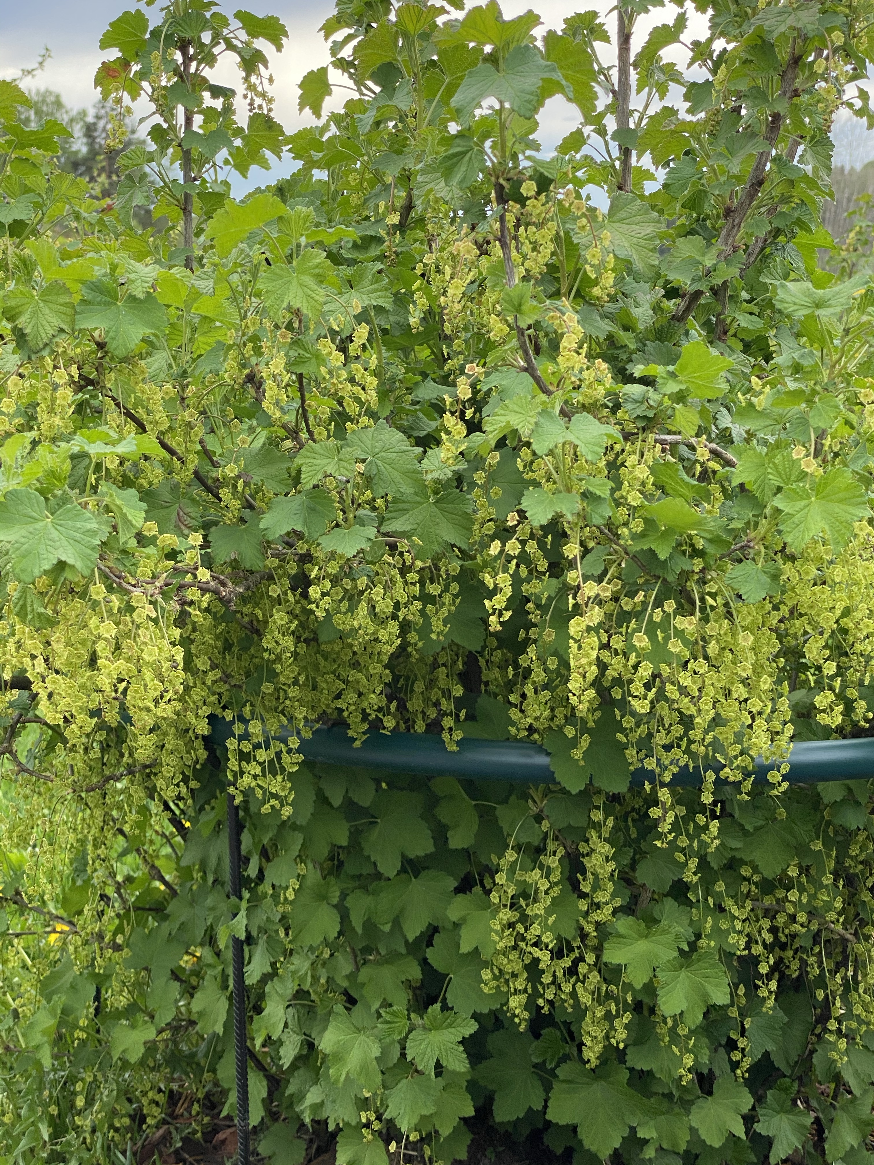 Vet ni – det har redan börjat stiga upp grönt från mina lådor! Jag ser små knoppar av ärter och rödbetor..härlig tid vi nu har, då allt börjar blomstra. Nu håller jag tummarna det blir ett gott år – för som ni kanske kan se på mina vinbärsbuskar, krusbär och träd så ser det lovande ut! Det är inte Babylons hängande trädgård ni ser på en bild, utan min rödvinbärsbuske som potentiellt kan ha sådär mycket bär om någon månad!