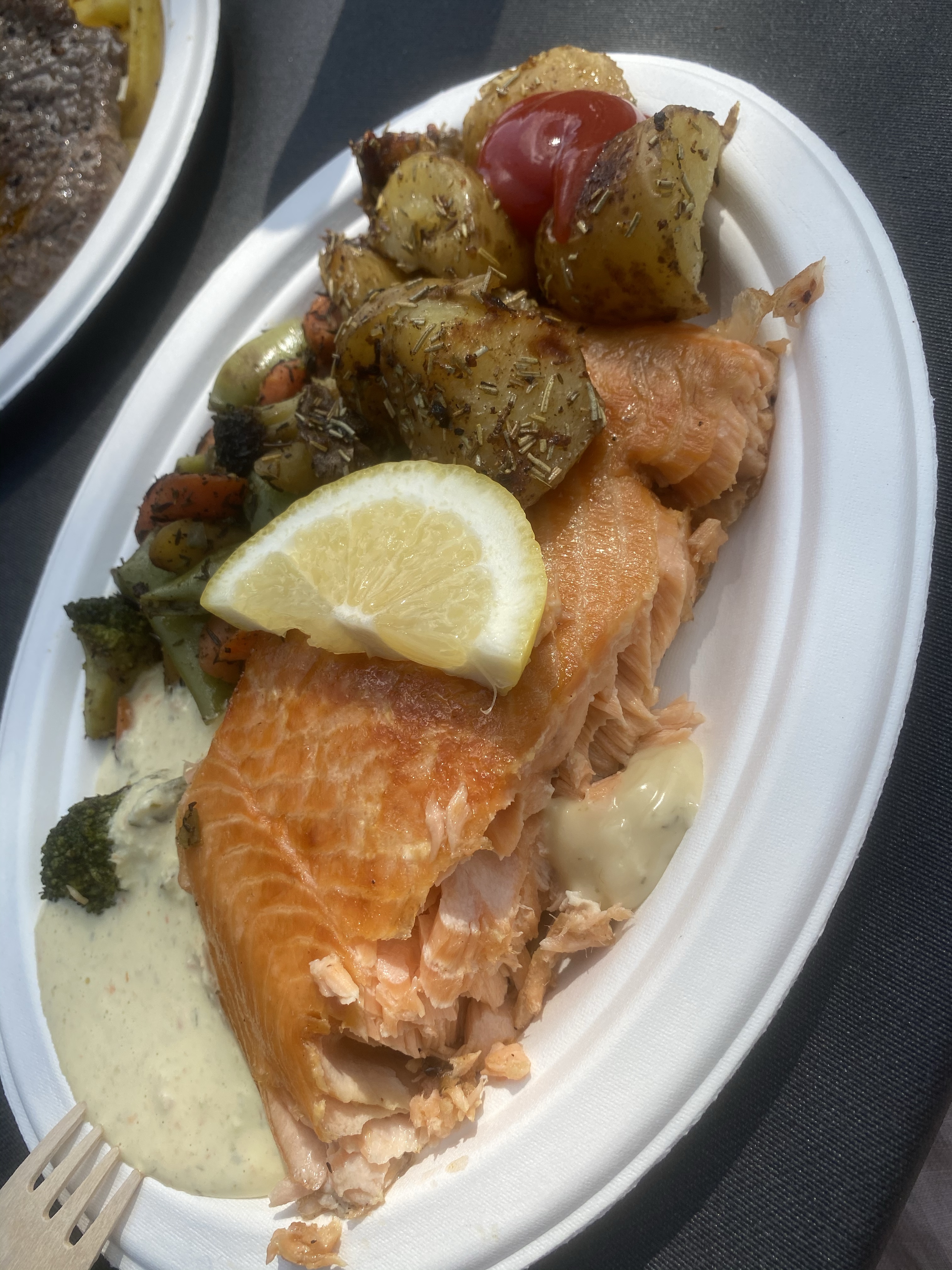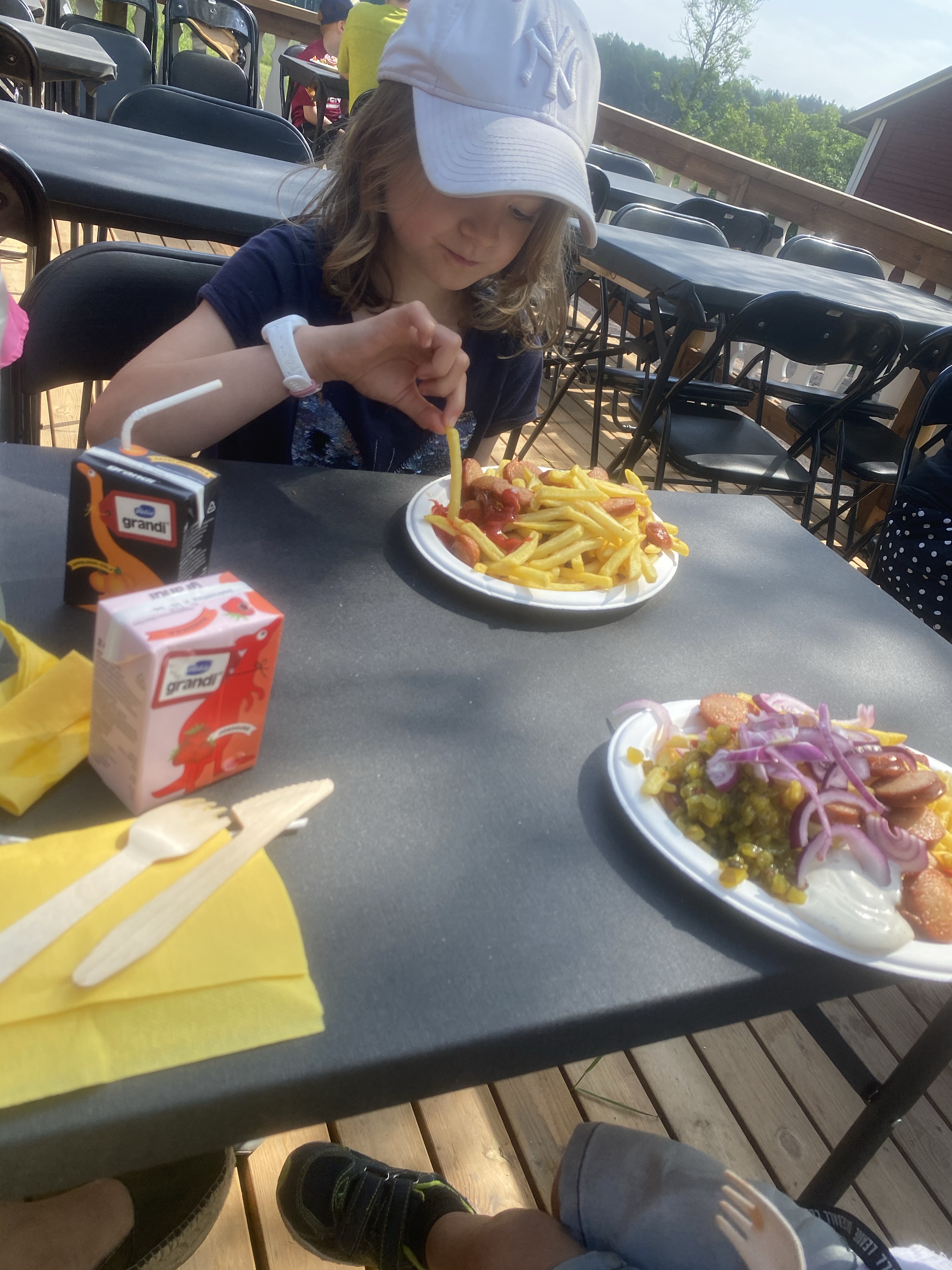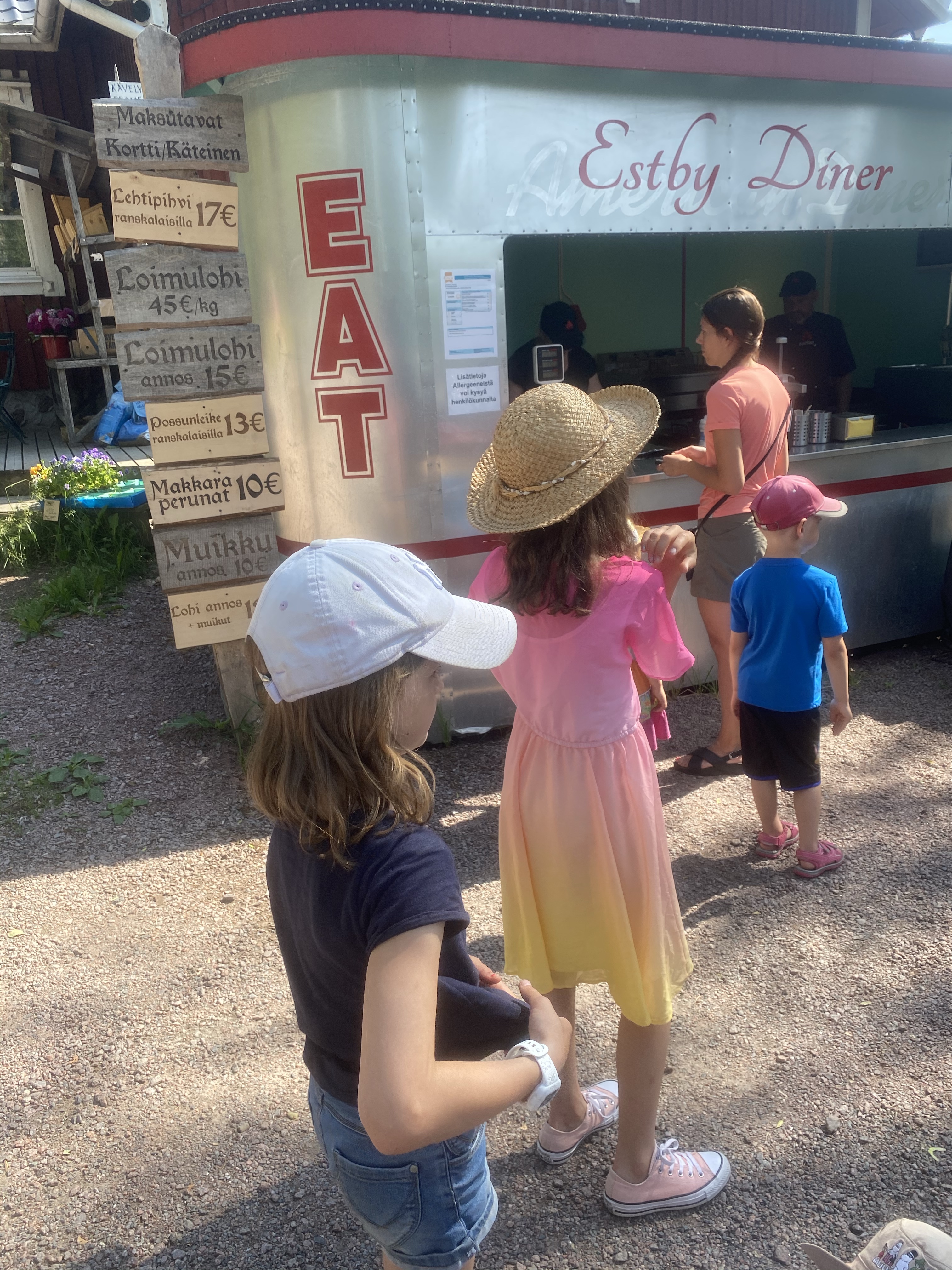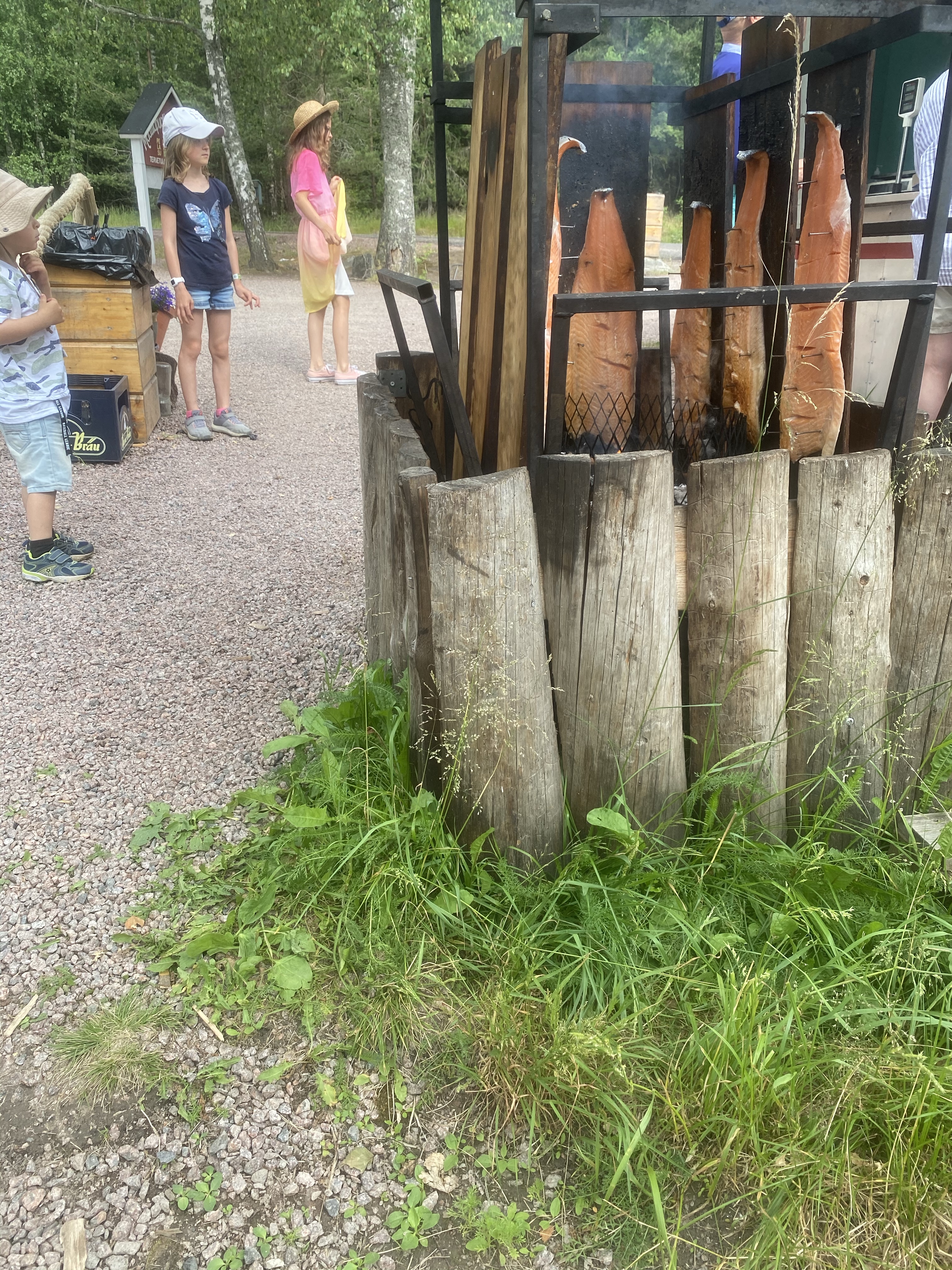 På midsommarafton styrde vi kosan söderut – närmare bestämt Gårdsboden och Linlo friluftsö. Mången har säkert besökt ställen/ställena men själv har jag faktiskt aldrig varit på Linlo och Gårdsboden främst då Sås och Kopp uppträtt och de haft större evenemang under årens lopp. Då vi kom dit löste sig direkt ”problemet” med var vi skulle äta dagens lunch eftersom där finns i sommar Estby Diner med helt underbar varmrökt lax. Att sitta och äta bredvid doften gav ett litet extra lyft och maten var otroligt god. Som ni ser var portionerna rejäla och det blev nog en del takeaway för de yngres del. Har lärt mig under årens lopp det är bäst att fylla barnens magar i god tid så slipper man ofta lite onödigt gnäll senare (fast det gäller förvisso på många vuxna också 🙂 ). Så stark rekommendation om ni vill pröva på nytt ställe att luncha på. Ni kan kolla in tider för öppethållning etc på deras FB-sida