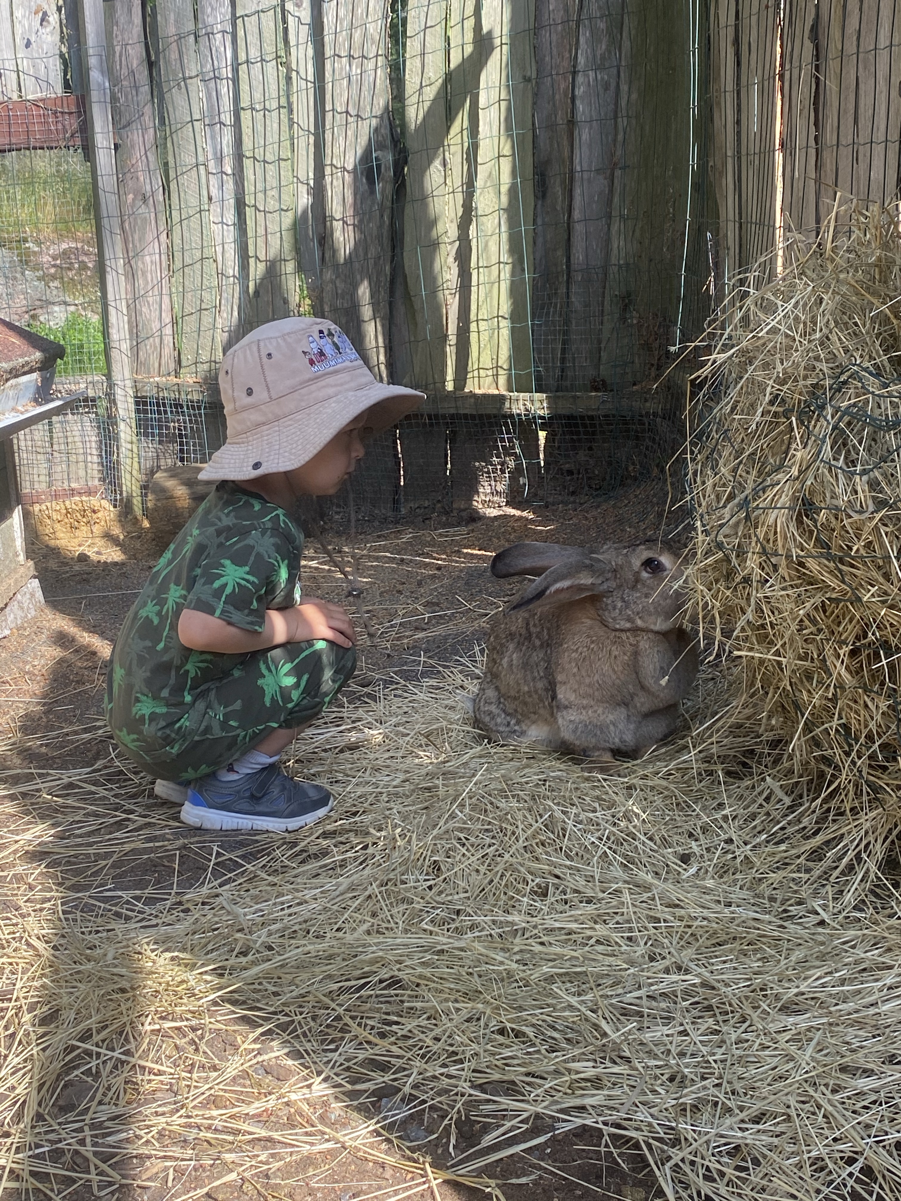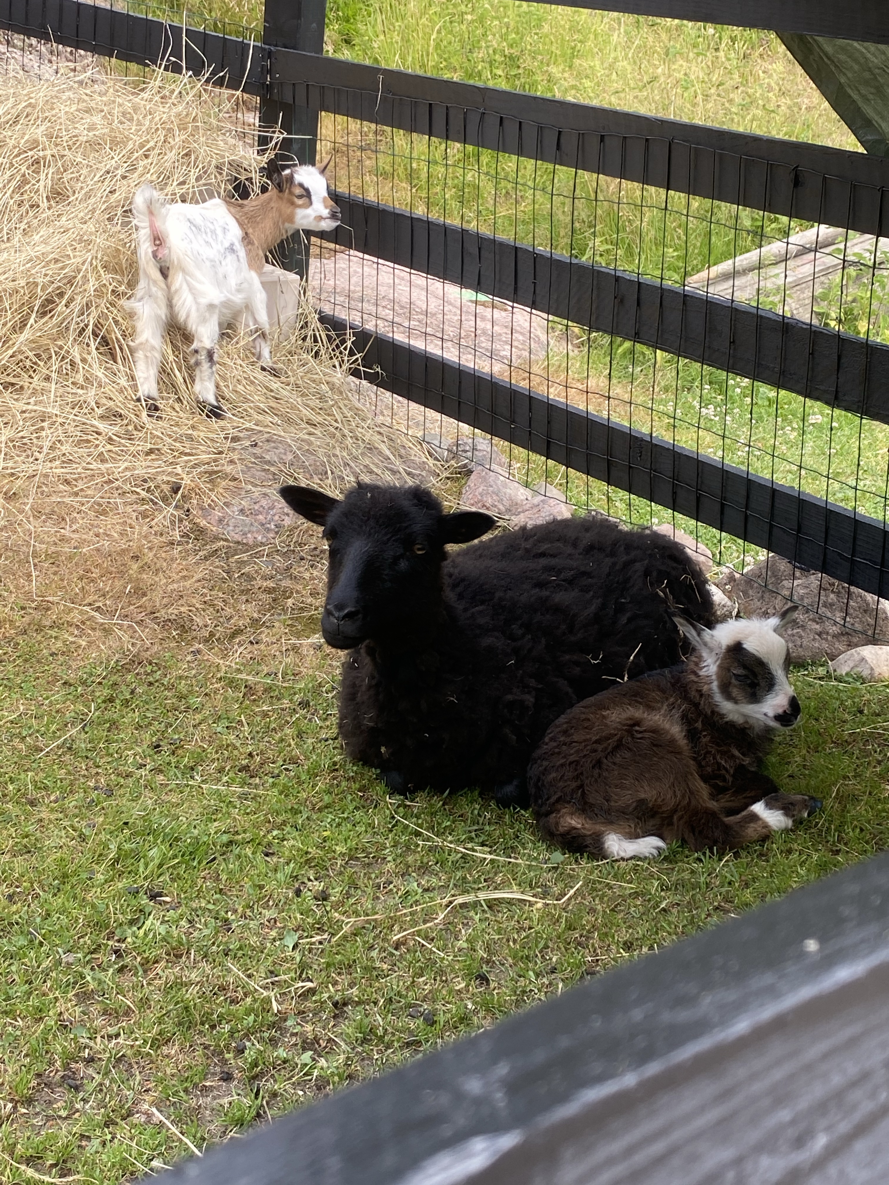 Vi har ju både hönor, tupp och kaniner hemma men ändå är det nog lite extra att få fara till en riktig smådjursgård. Denna gång blev det Rehndal – ett ställe vi nog besökt nästan varje år och där man får klappa får och ponnyn.