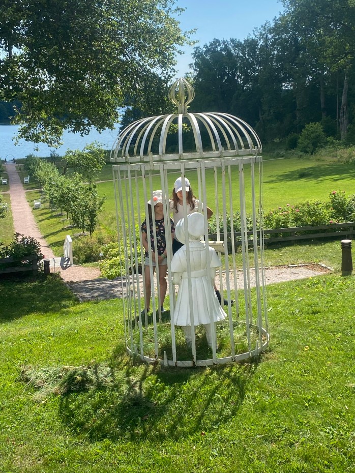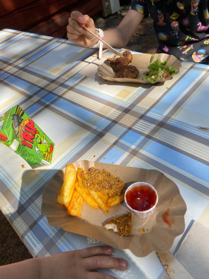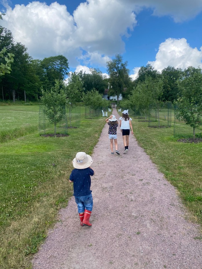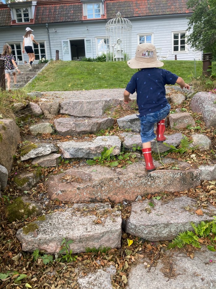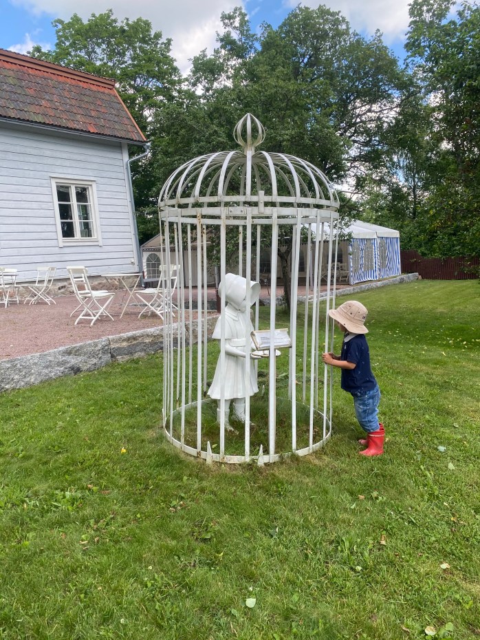 Här i ”hemknutarna” har vi fått många trevliga caféer att besöka. Dag 5 styrde vi kosan mot Wohls gård och dess utbud. Vi inledde med att äta i Mitis café som har sommarcafé , hon har fått en massa beröm då jag läst olika recensioner och vi blev inte besvikna. Personalen var väldigt vänliga och barnasinnade, och kollade redan på förväg om barnen gillade köttbullarna (som var supergoda, lite orientalisk smak) så de hade möjlighet att ändra sig om de så ville. Min äldsta dotter sa hon aldrig ätit godare bullar, så det får vara en tillräcklig god recension för er andra 🙂 Portionerna var just lagom, ofta får jag så dåligt samvete då det blir massa mat över men dessa var väl måttade och priset hyggligt. Vi satt utomhus men det fanns också ett gammalt stall med ”mysbelysning” om vädret hade varit sämre.