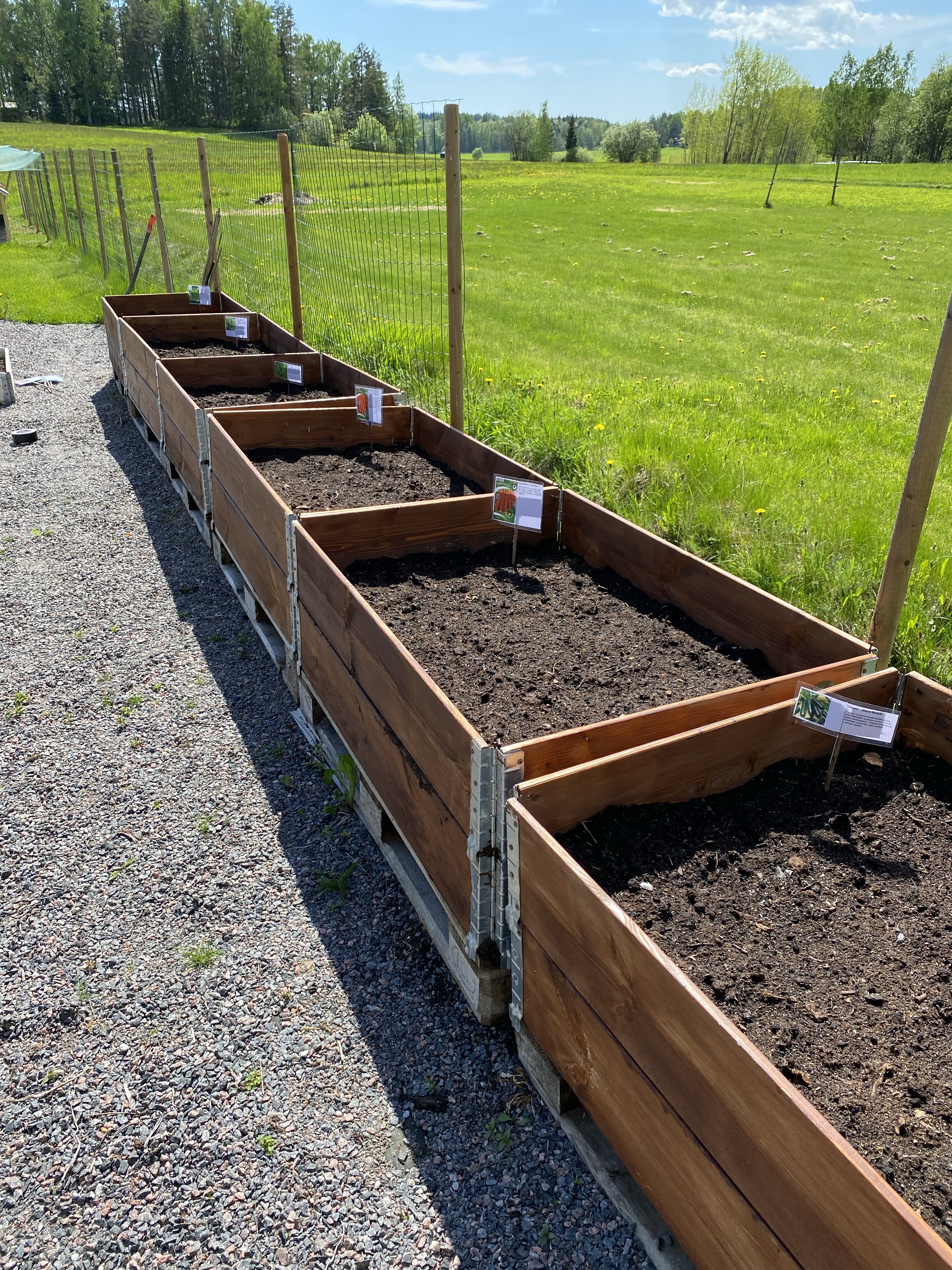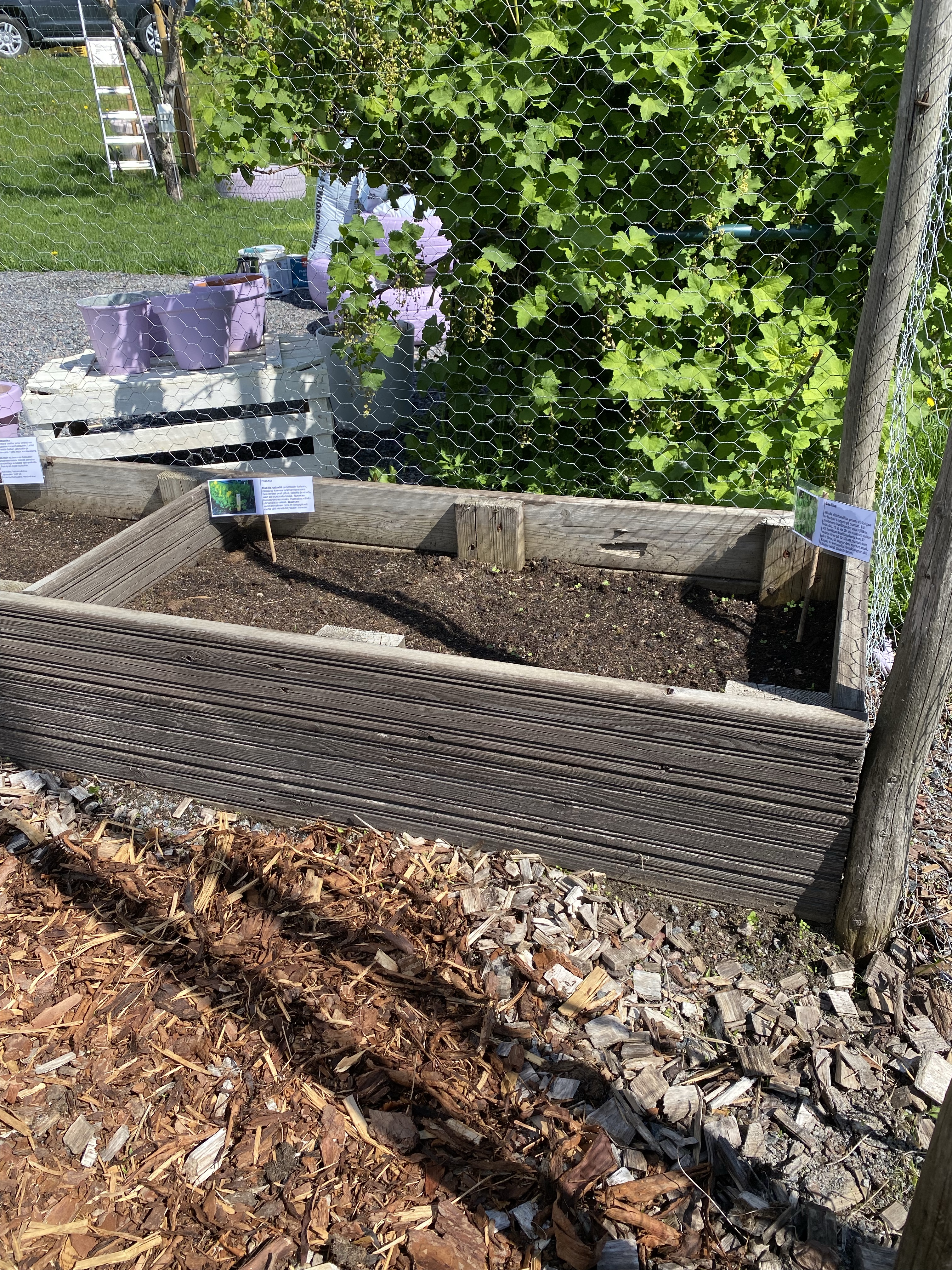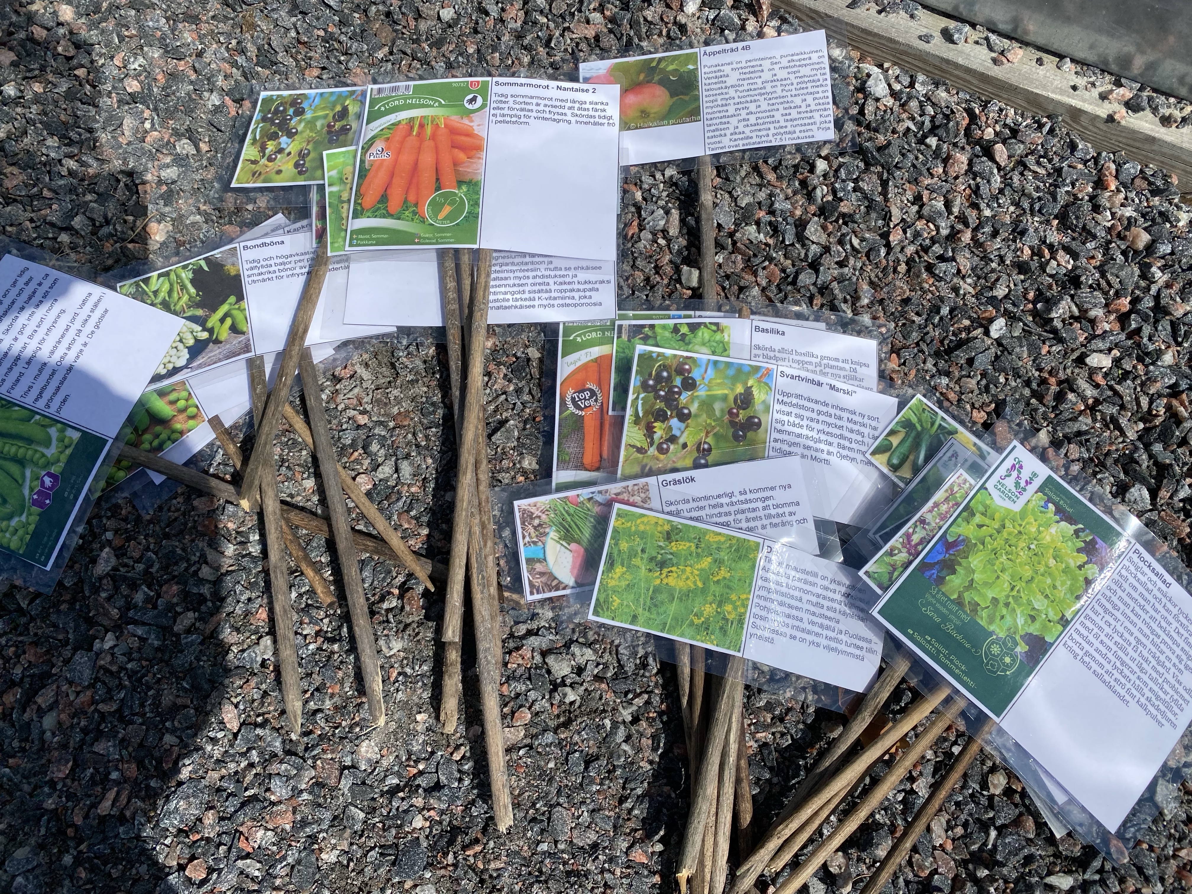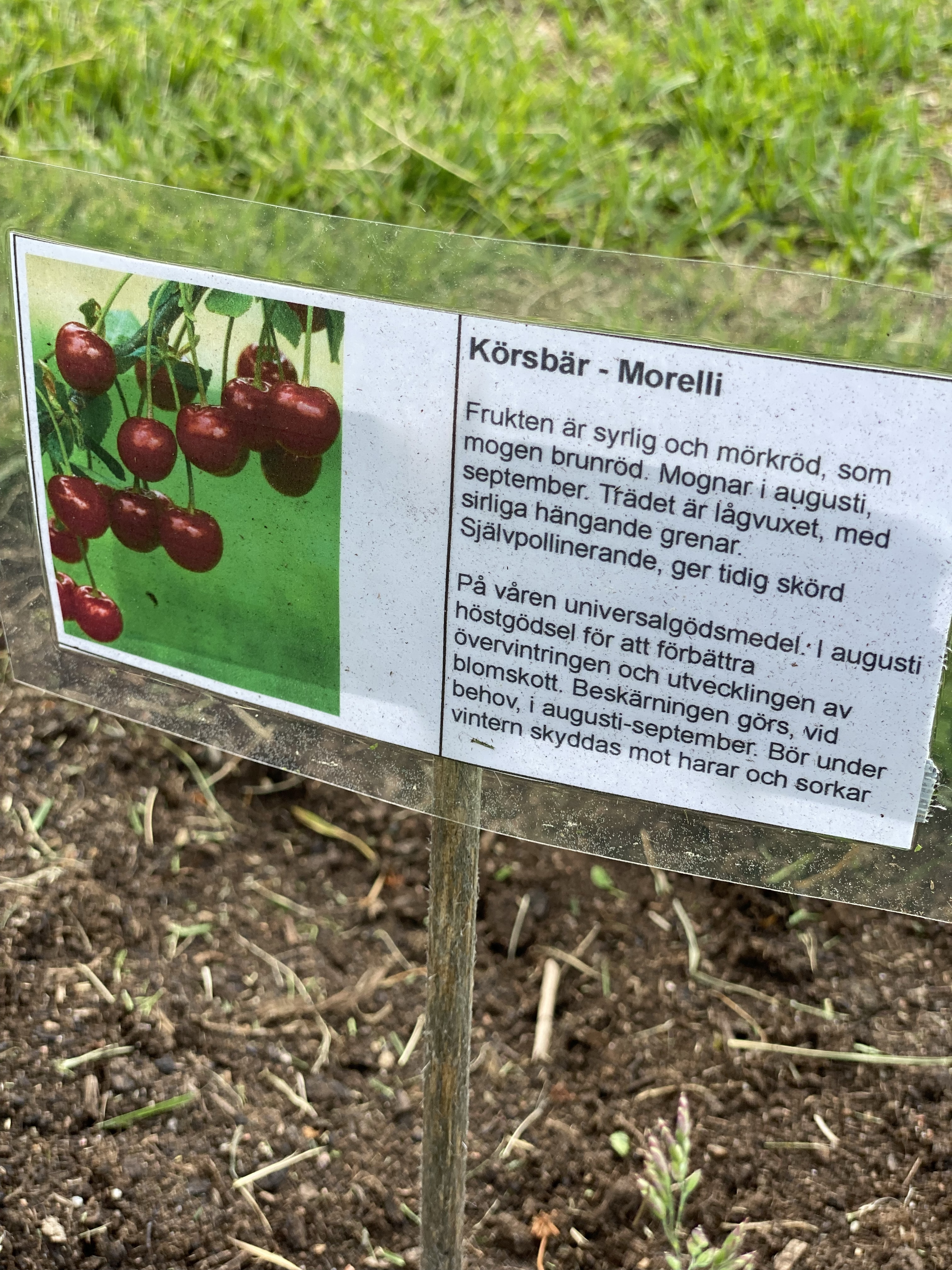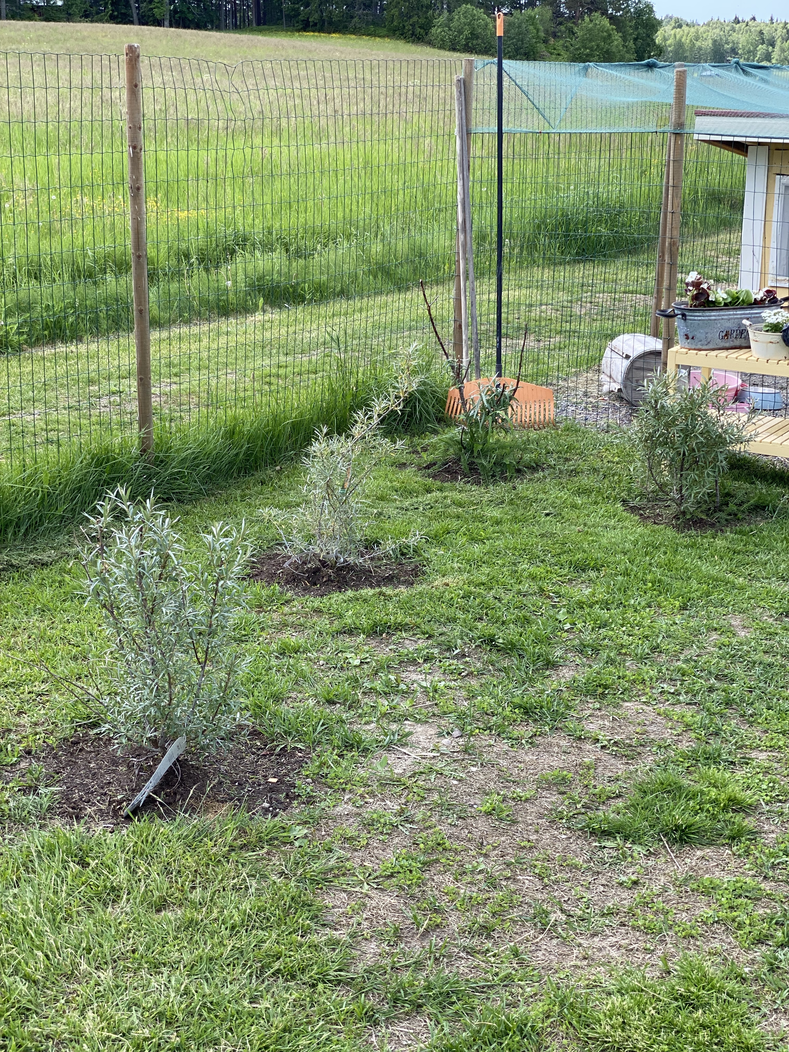 Årets nyhet är väl att jag underhjälpt mitt minne med laminerade lappar vad jag odlat i alla lådor – tänker varje år jag nog minns men sen ändå blandar jag. Under våren köpte jag lite mer havtorn (havtornsknuten uppe till vänster), bärbuskar, körsbär och äppelträd.