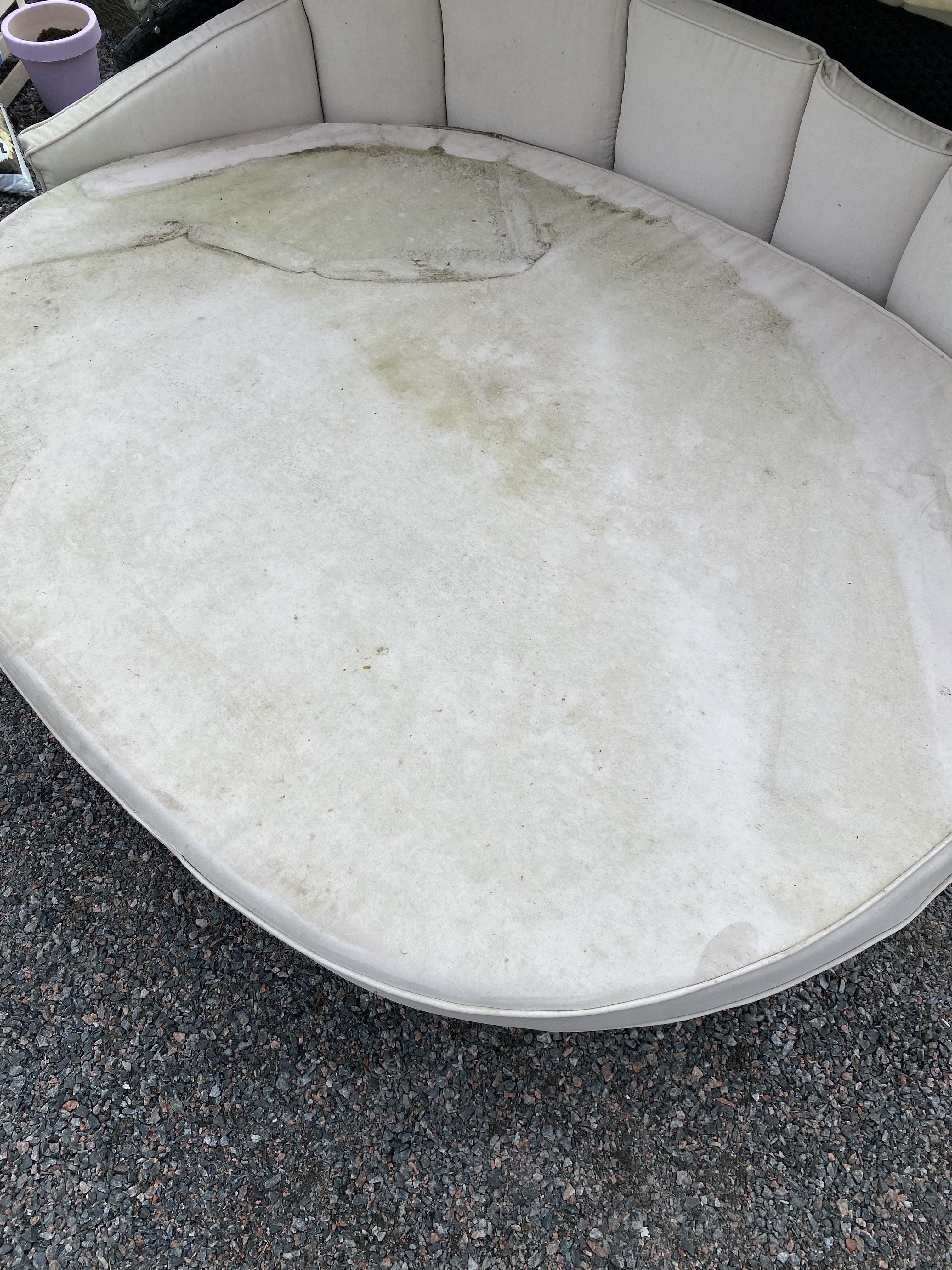 Sen till mitt mirakelmedel och soda som kan nästan rengöra allt! Om man har smutsiga textiler som blivit ute kan man pröva detta: Häll soda över fläckarna, och spraya på en blandning som innehåller 3 dl vatten och 2 dl ättika (10%) + 5 droppar Fairy och låt verka en stund. Gnugga eller kör med stark vattenstråle och sen solljus som bleker/fixar resten. Så gott som ny efter det – åtminstone för en stund 🙂