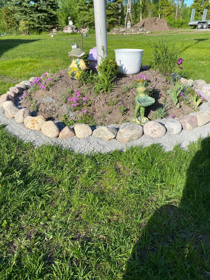 Köpte några grodor av grannen som jag tyckte passade väl in att sitta med i rabatten..kwak Kwak!