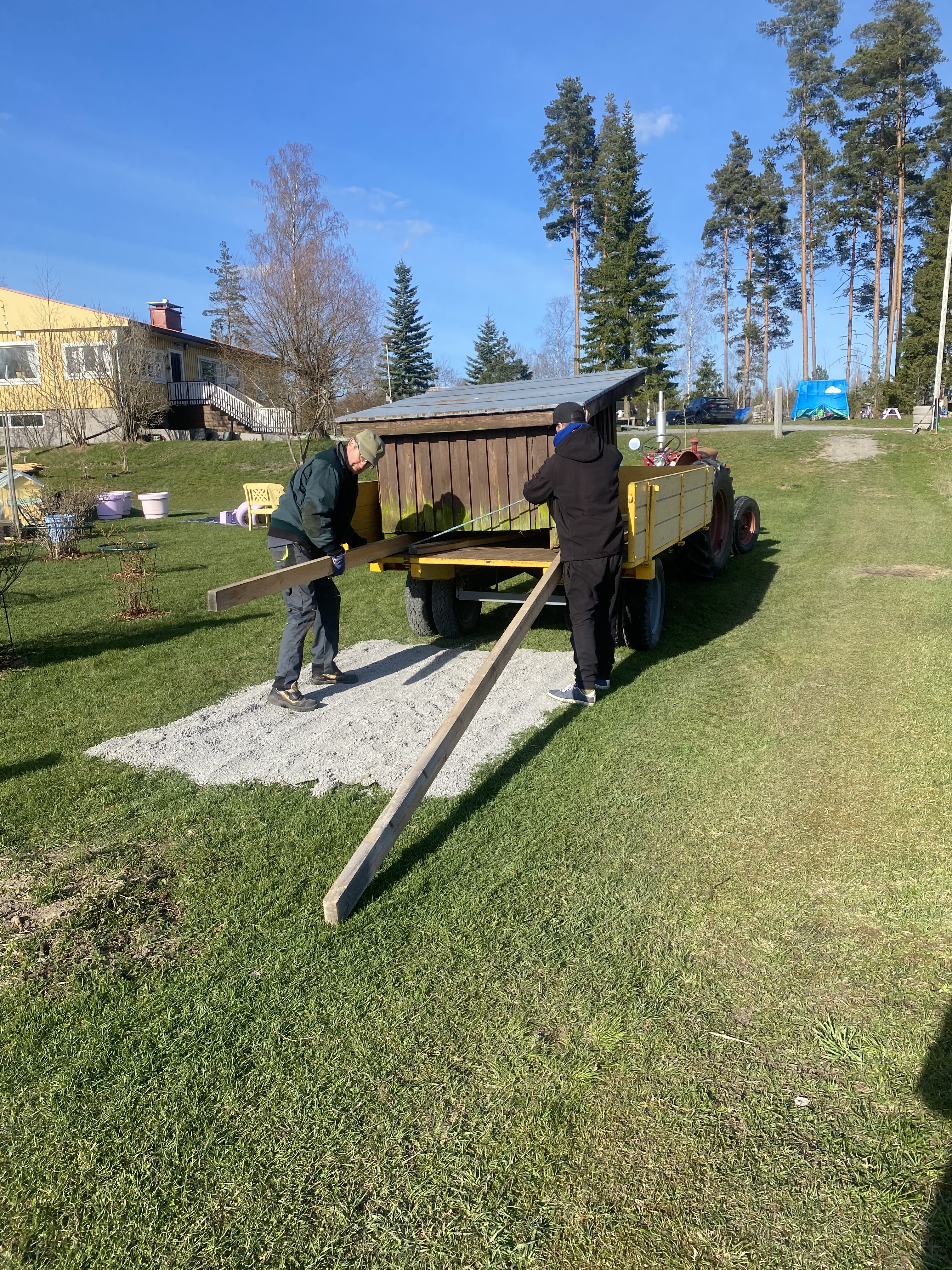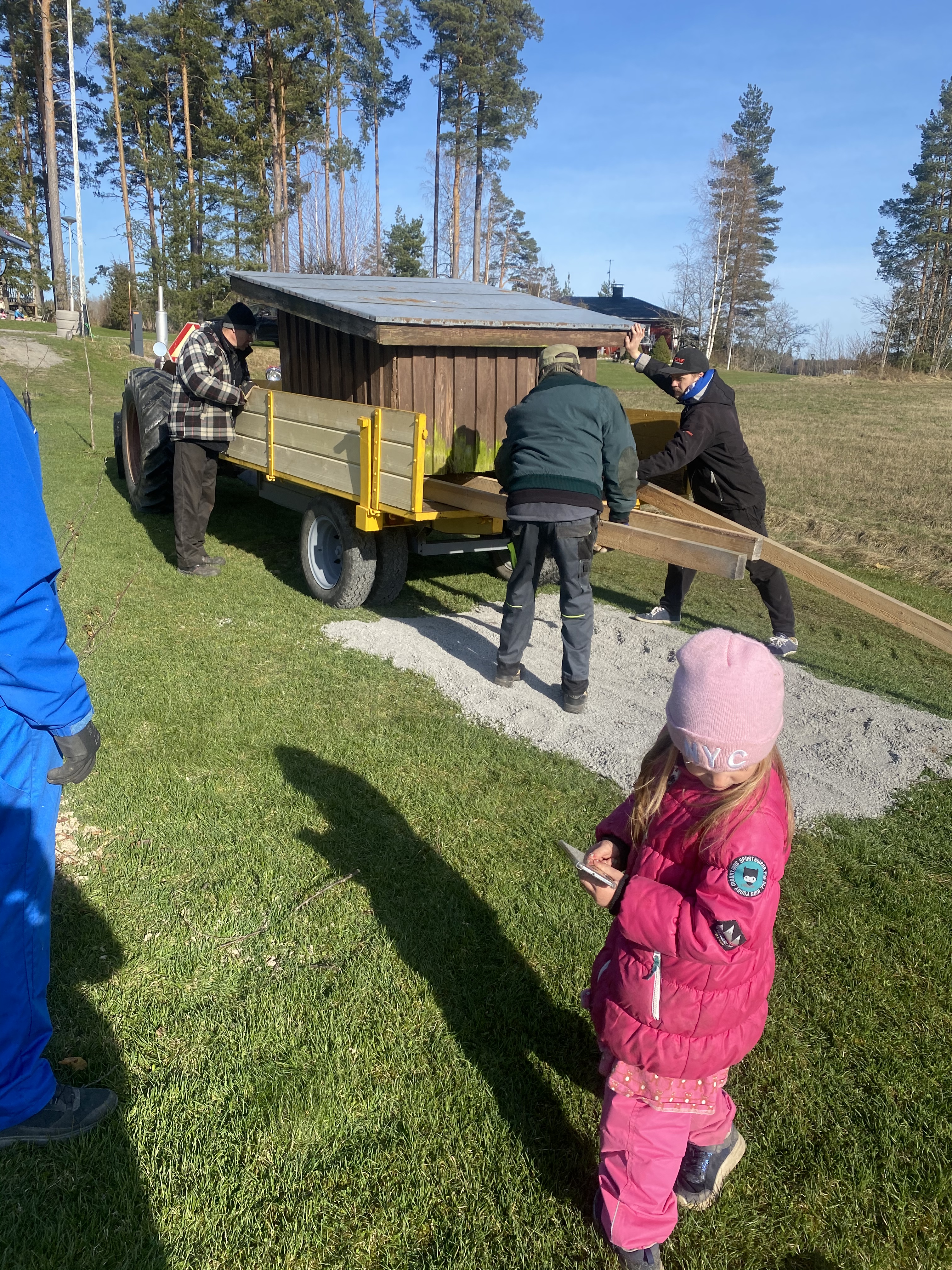 För ett tag sedan fick vi en gammal hundkoja, tung som gatan. Som tur har man släktingar som ställer upp med både släp och traktor – så vi fick den förflyttad några kilometer. Det är alltid roligt med projekt och här nedan ser ni utgångsläget då vi fick den till backen.