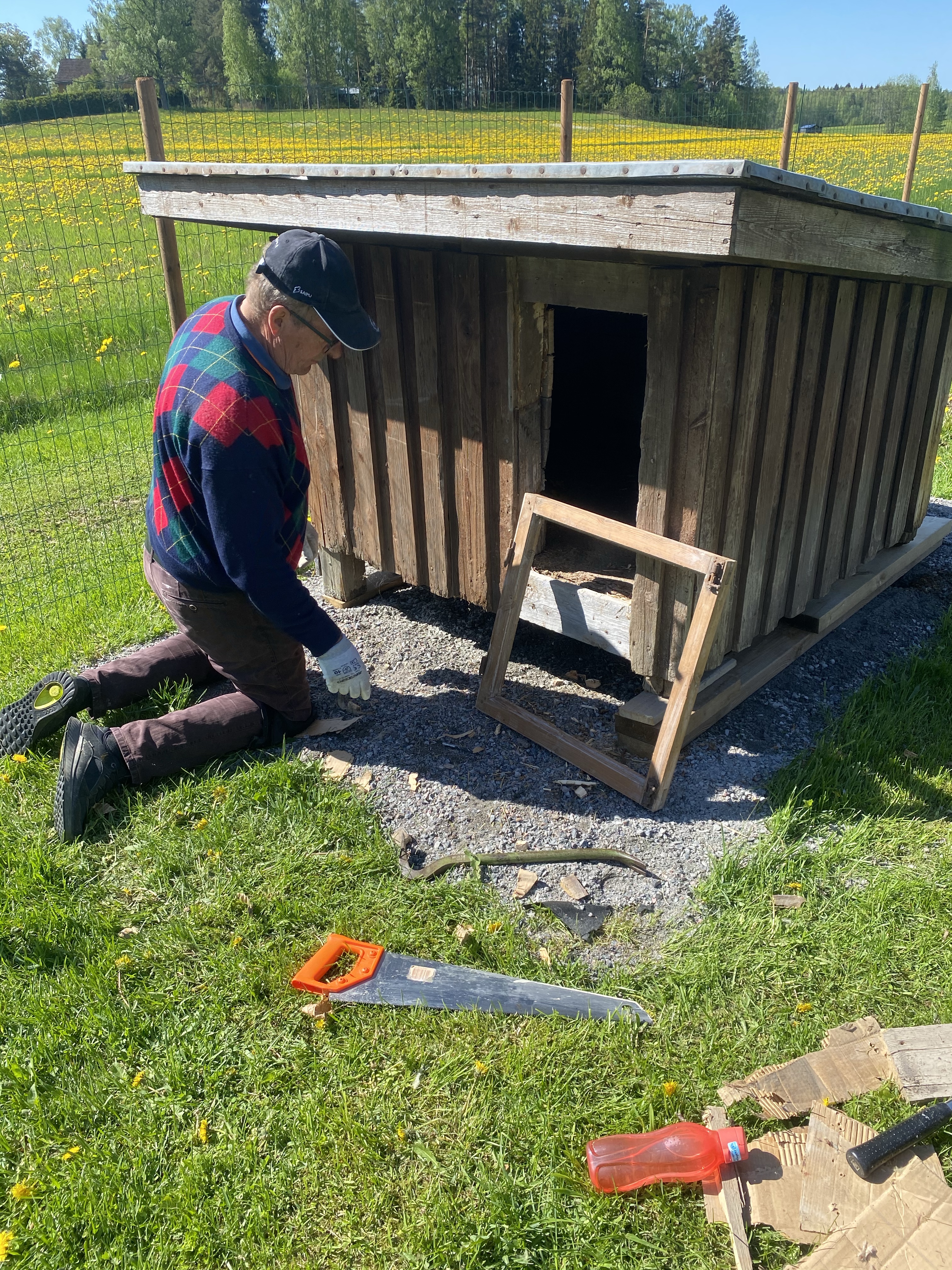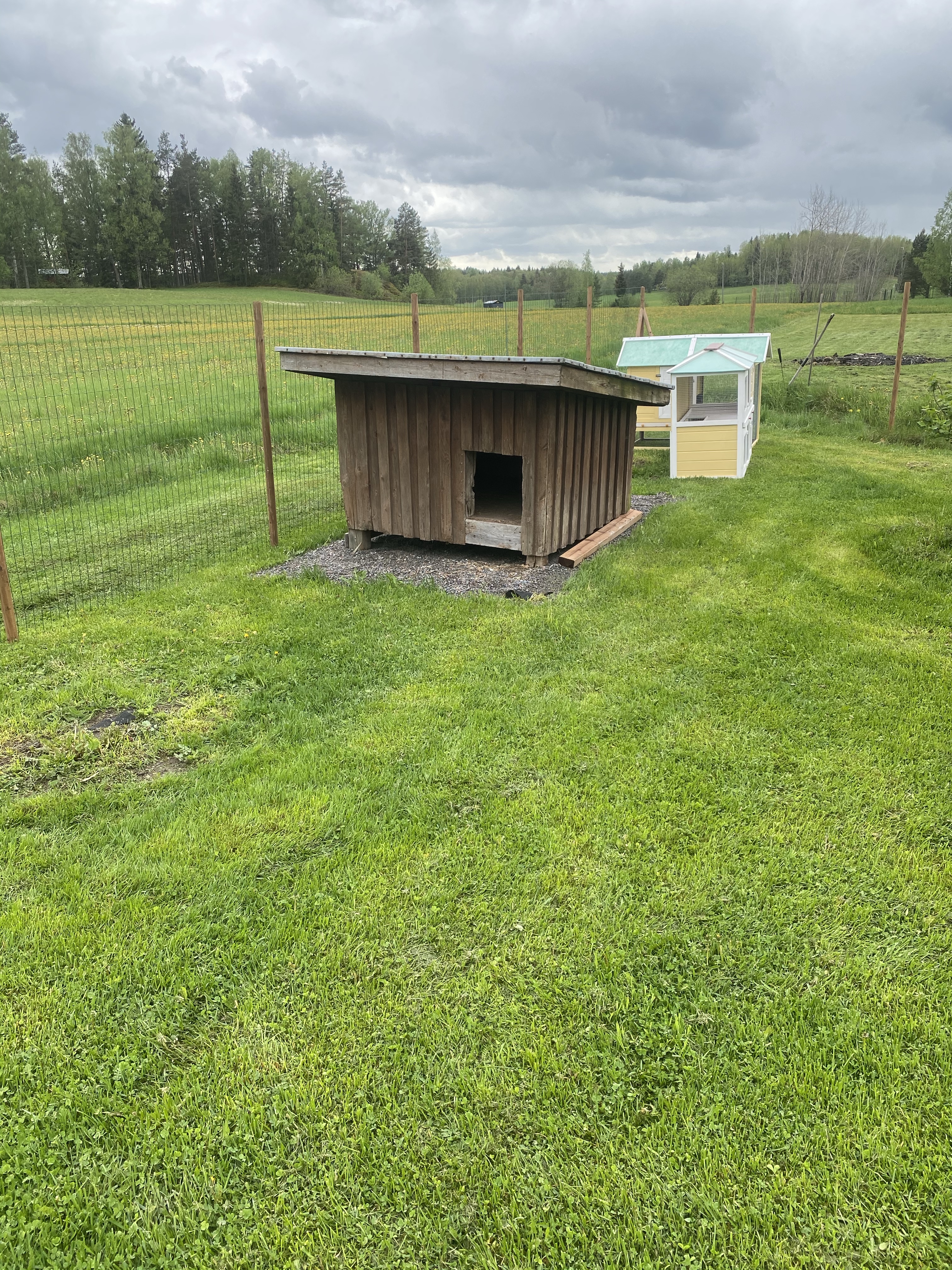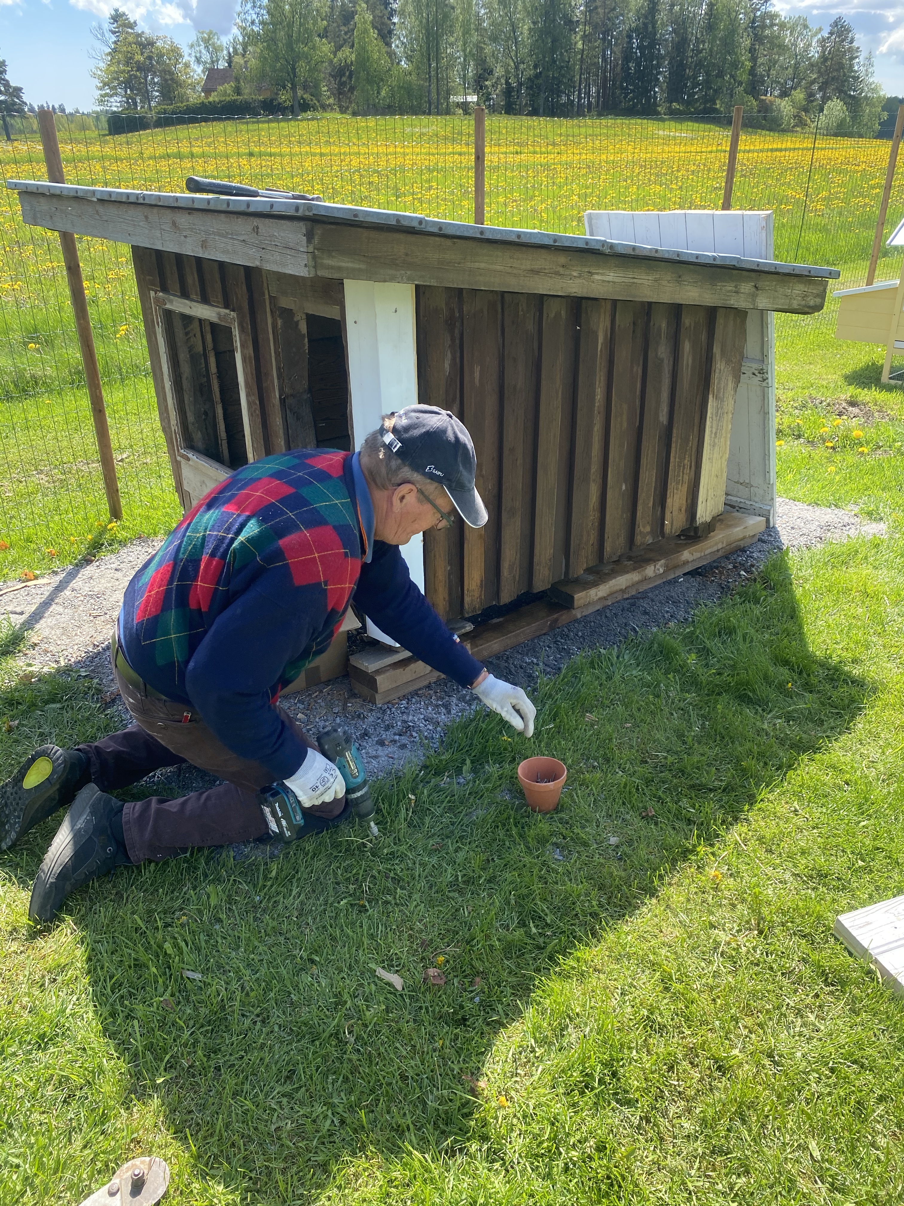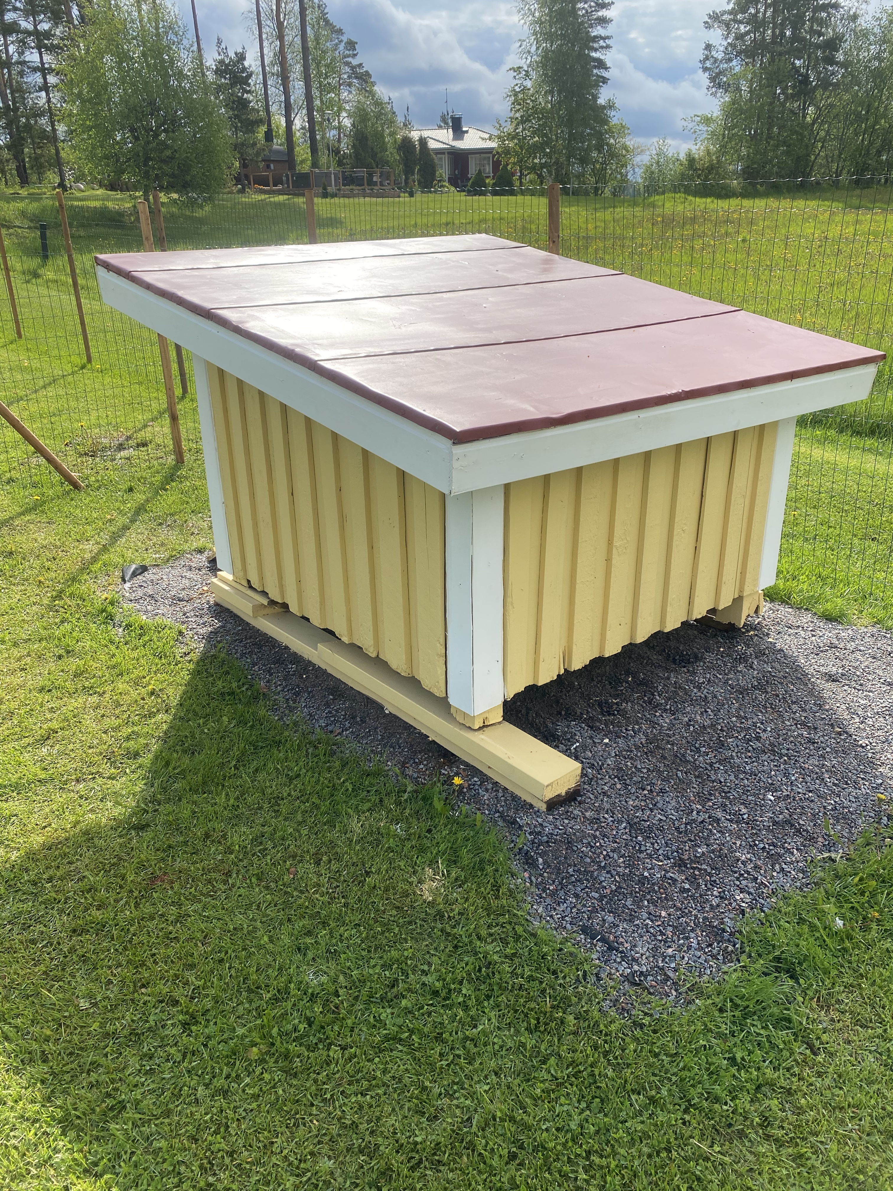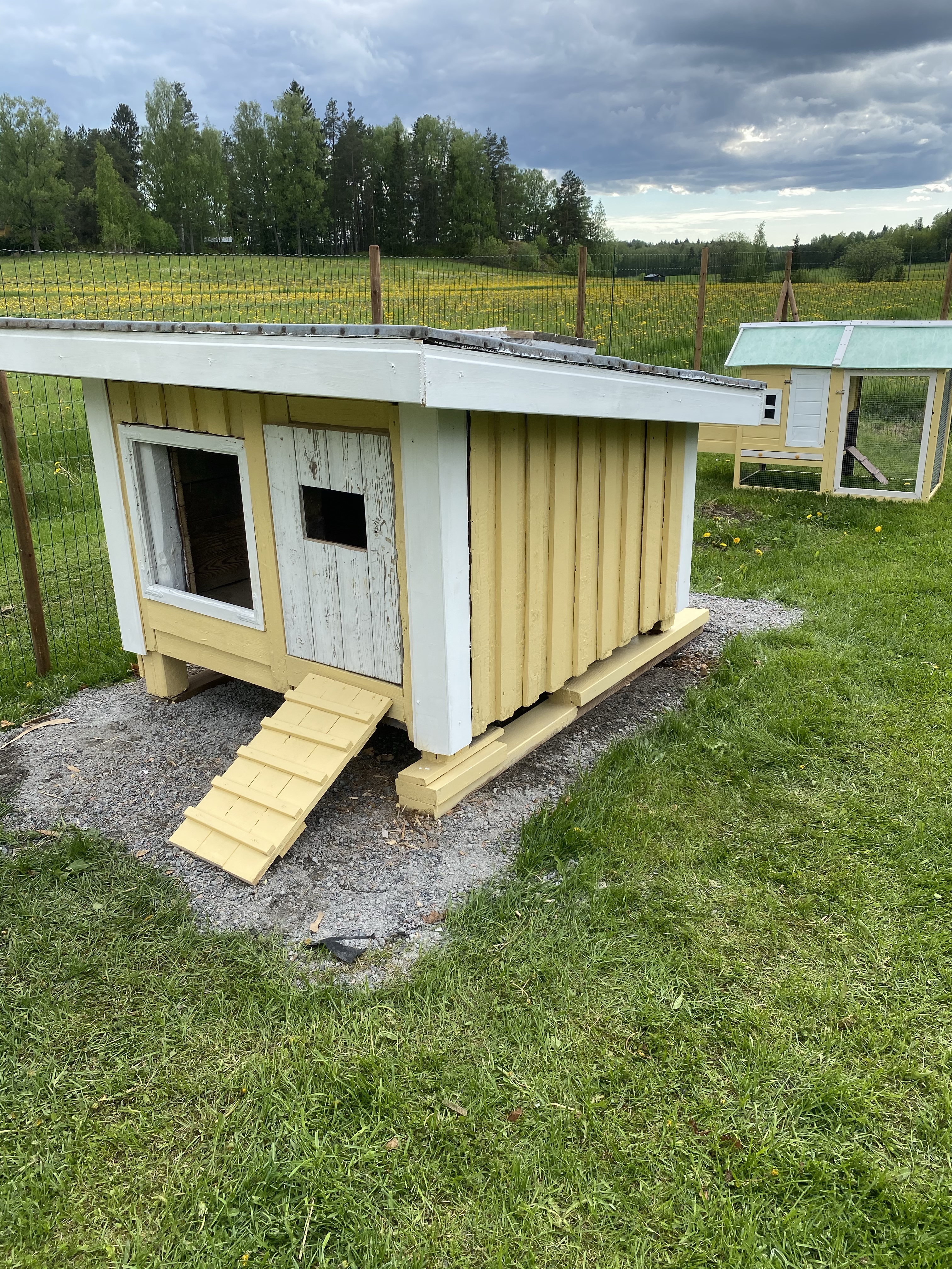 Hade köpt några små färdiga höns- och kaninburar innan, men ville som sagt ha en stor och rejäl koja – said and done. Denna hålls nog i ur och skur. Är jättenöjd över slutresultatet och nu skall det ännu införskaffas sista grejerna innan vi får hönor hit och jag tar ut kaninerna på sommarbete.