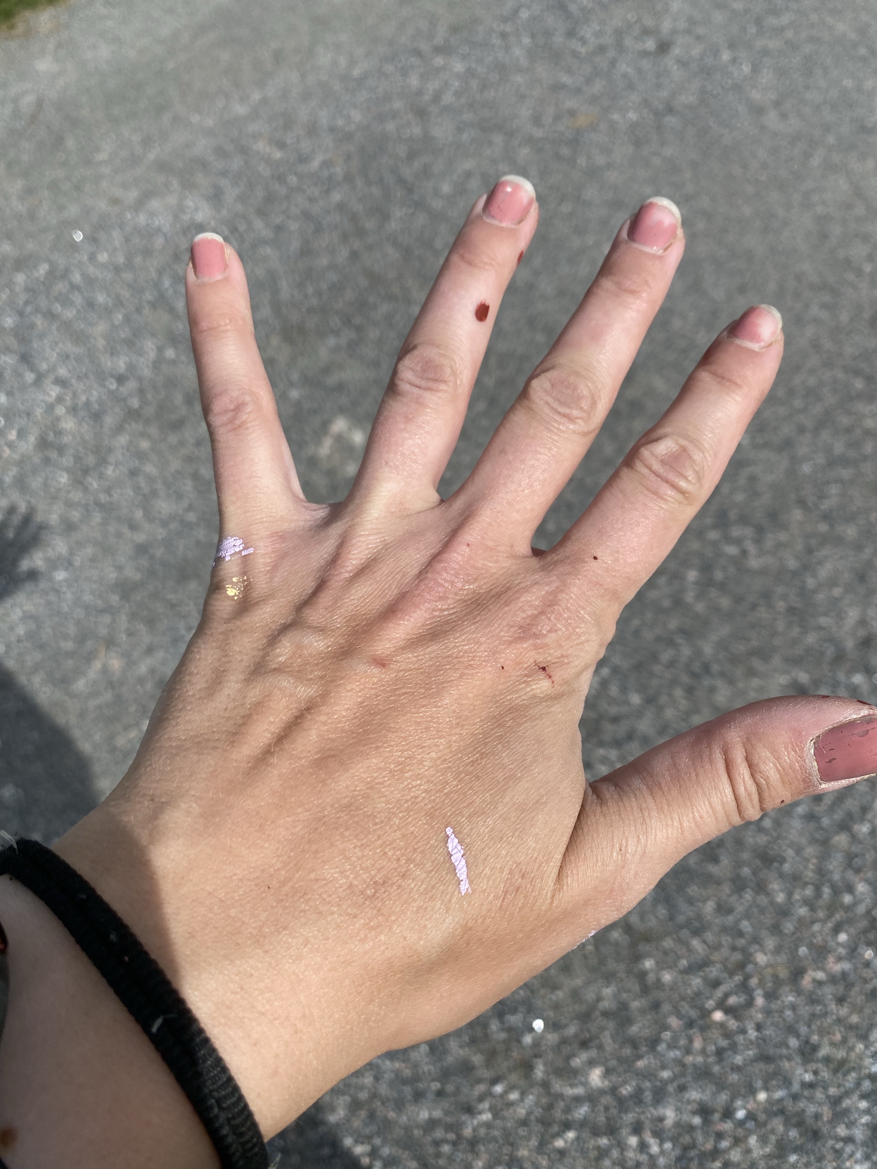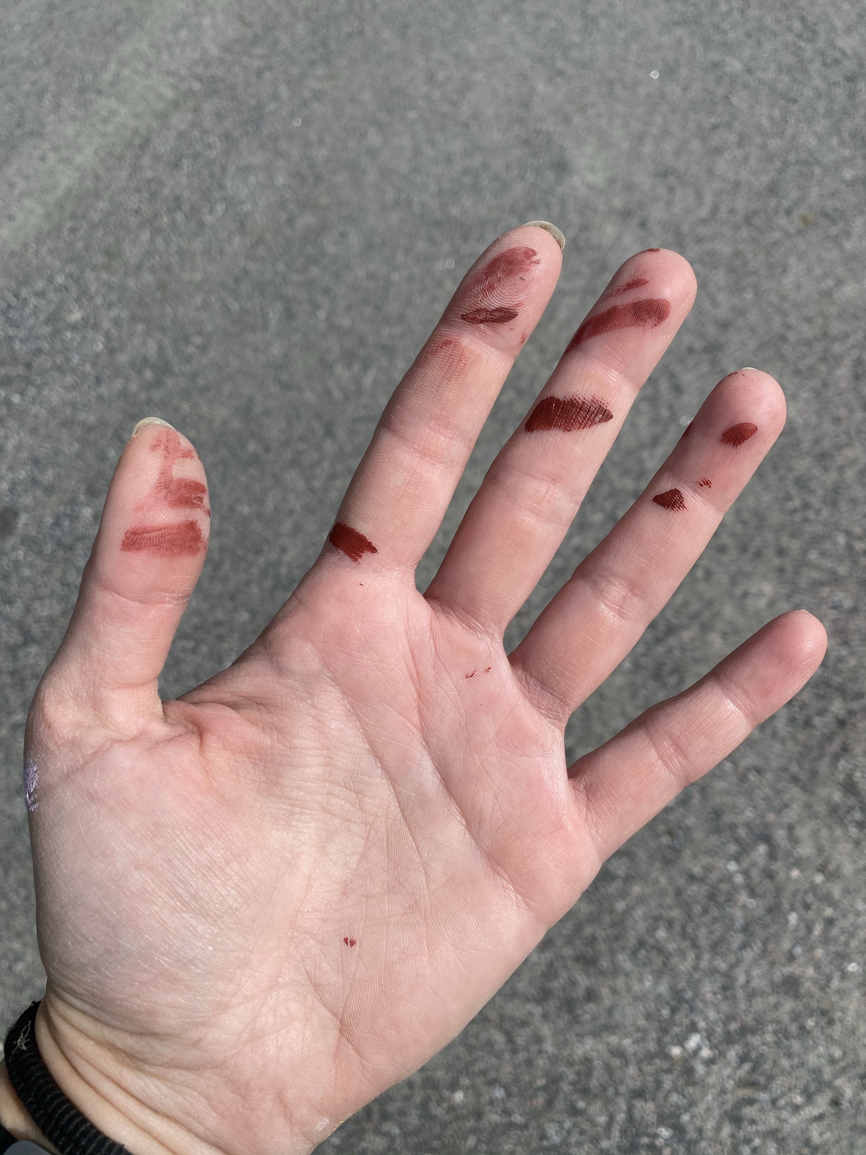 Det är ju så roligt att måla! Men ack att jag ALLTID glömmer att sätta handskar på (är väl för ivrig så det glöms bort). I flera dagar har man sen målfärg på händerna..Det gäller ju att ha samma färg på kojan som egna huset.